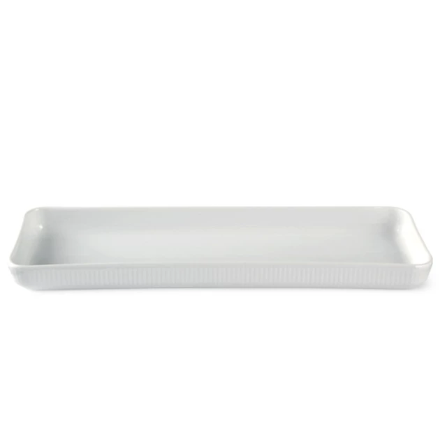Die rechteckige Platte oder das rechteckige Tablett aus der Royal Copenhagen Weiß Gerippt / White Fluted Porzellan Serie